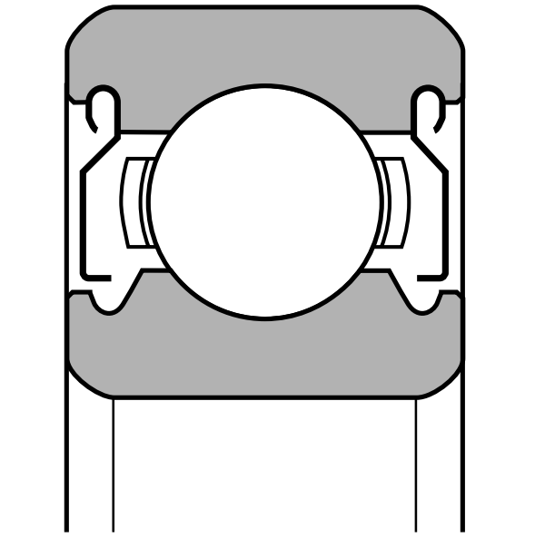 二是LLB型(非接觸密封型),如上圖所示,如上圖所示,密封圈由合成橡膠制成,模制在外圈上,密封圈邊緣沿內圈表面與V型槽對齊,并留有迷宮間隙,密封圈與內圈無接觸,相較ZZ型,LLB型的防塵效果更佳,其他特性與ZZ型基本相同。