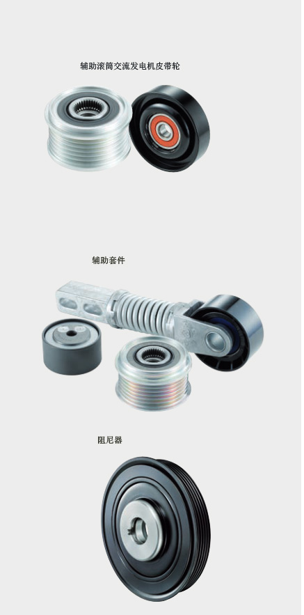 •當我們可提供輔助皮帶時,滾筒、套件、減振器和交流發電機皮帶輪等也可以提供。