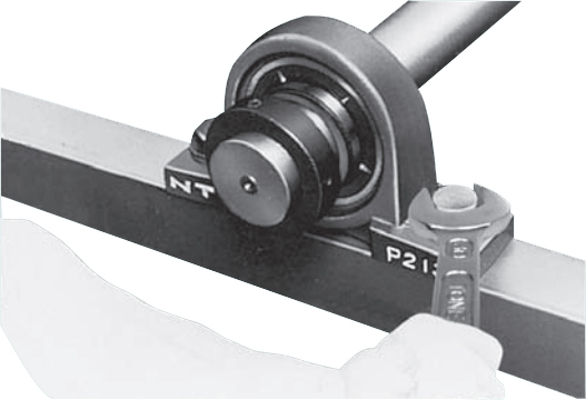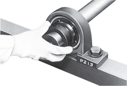 3、外殼安裝。將軸承座外殼牢固安裝到機架上,應準確確定裝置和軸的相對位置,使裝置不會受到任何推力,然后插入偏心鎖環,如上圖所示。