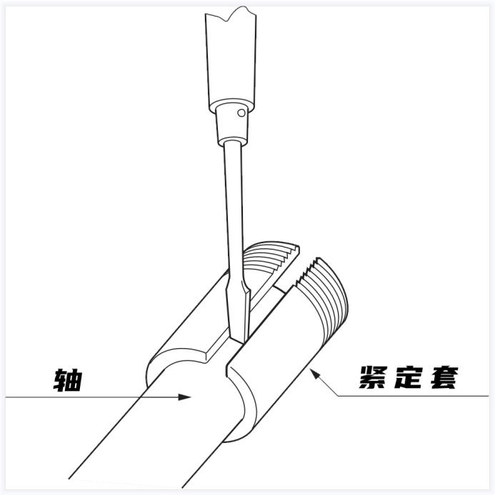一、調(diào)整套筒的位置,使錐形部分接近軸承的中心,為了便于將套筒安裝到軸上,可以使用螺絲刀或類似工具加寬套筒中的開口,套筒的位置應(yīng)確保螺母位于皮帶輪的另一側(cè),以便于移動,如上圖所示。