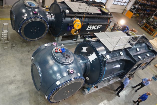 SKF的兩個(gè)完全集成的動(dòng)力系統(tǒng)在該發(fā)電廠中發(fā)揮著重要作用,其安裝于兩個(gè)機(jī)翼形臂上,在潮流的驅(qū)動(dòng)下,兩個(gè)直徑為21米的雙翼旋翼在其末端旋轉(zhuǎn),發(fā)電機(jī)產(chǎn)生的電力通過海上電纜輸送到岸上。
