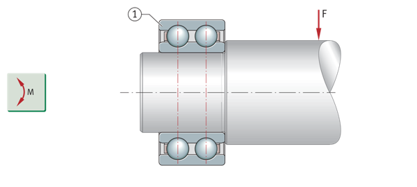 如果負載偏心,軸承會受到傾斜力矩的作用。除了雙列深溝球軸承和角接觸球軸承外,在這種情況下,適合使用面對面或背對背配對的單列角接觸球或圓錐滾子軸承