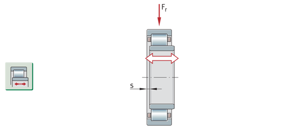 圓柱滾子軸承NU,非定位軸承,軸承內位移補償 s=軸向位移距離 | ![]() |