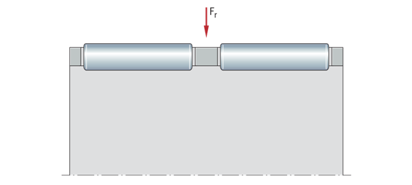由于滾針的線接觸,滾針和保持架組件適用于支撐高徑向載荷。與滾珠相比,滾針在垂直于其軸線的方向上具有更大的接觸面積。因此,可以傳遞更高的力,具有更大的剛度,并且可以用更小的滾動元件來支撐相同的載荷。雙列軸承具有特別高的徑向承載能力,當單列軸承的承載能力不再足夠時,使用它們。