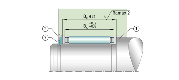 滾道寬度必須至少等于標稱寬度Bc(Bc以(-)公差生產);保持架軸向運行表面之間的間距必須足夠大。為了避免滾針和保持架組件(H12符合ISO 286-2)卡住,運行表面的間距尺寸為Bc H12?。滾針和保持架組件的橫向運行表面必須設計為精密機械加工(建議使用Ramax 2)且耐磨,應避免運行表面出現中斷。