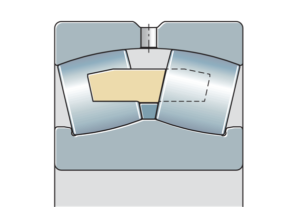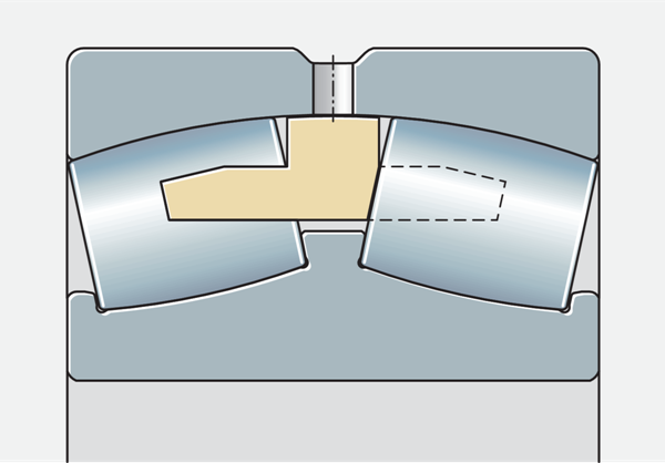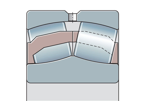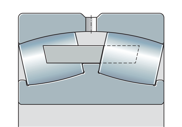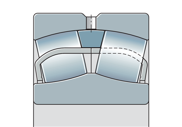 由于外圈有凹形滾動元件滾道,調(diào)心滾子軸承能夠進(jìn)行角度調(diào)節(jié),它們允許外圈和內(nèi)圈之間在一定范圍內(nèi)偏斜,而不會對軸承造成損壞,因此可以補(bǔ)償錯位、軸偏轉(zhuǎn)和殼體變形。