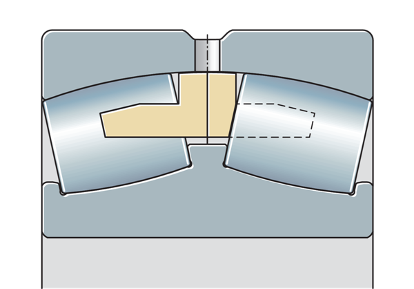 兩件式黃銅保持架 外圈導(dǎo)向,內(nèi)圈帶兩個(gè)側(cè)向擋肋和一個(gè)中心擋肋 | ![]() |