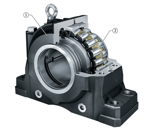 帶調(diào)心滾子軸承的剖分式軸承座SNS ①剖分式軸承座外殼SNS ②調(diào)心滾子軸承 | ![]() |