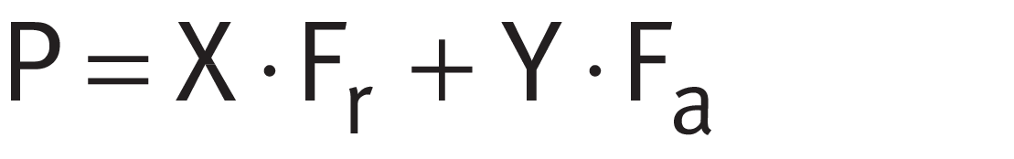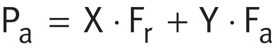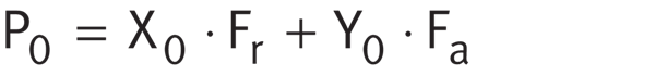 該計算不適用于徑向滾針軸承、軸向滾針軸承和軸向圓柱滾子軸承。這些軸承不允許使用組合載荷。