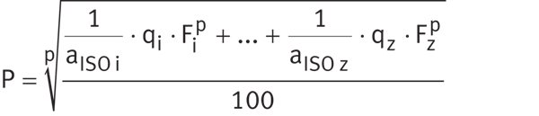 | p | - | 壽命指數;對于滾子軸承:p=10/3,對于滾珠軸承:p=3 |