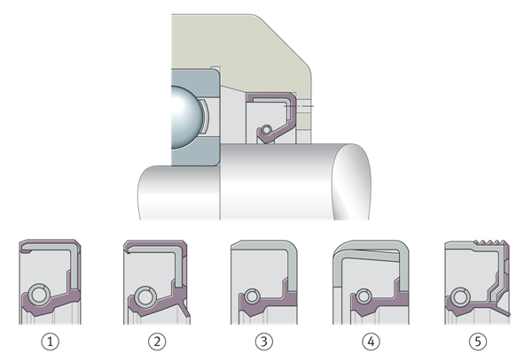 在設計包絡線較小的情況下,滾動軸承(經常使用帶有集成密封墊圈的滾珠軸承、滾子軸承、調心滾子軸承、環形滾子軸承)請參閱產品章節。這些密封墊圈包括用于加強的金屬片墊圈,并且具有硫化彈性體密封唇。