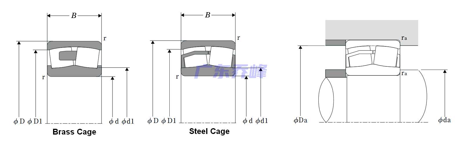 調心滾子軸承 - 圓柱孔,213系列 - 尺寸