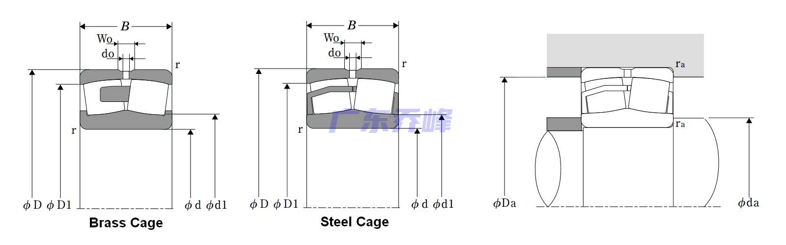 軸承型號:23028EAW33C4,調心滾子軸承 - 圓柱孔&注油槽,230系列,其基礎型號為23028,后綴列表:【EA:EA型,帶壓制鋼保持架,高載荷】【D1:外圈潤滑油槽油孔】【C4:C4游隙】