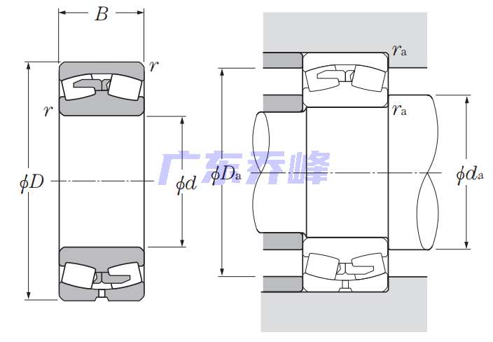 調心滾子軸承 - 圓柱孔,231系列 - 尺寸