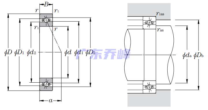 | 超高速角接觸球軸承 - HSF型 - 尺寸 | |