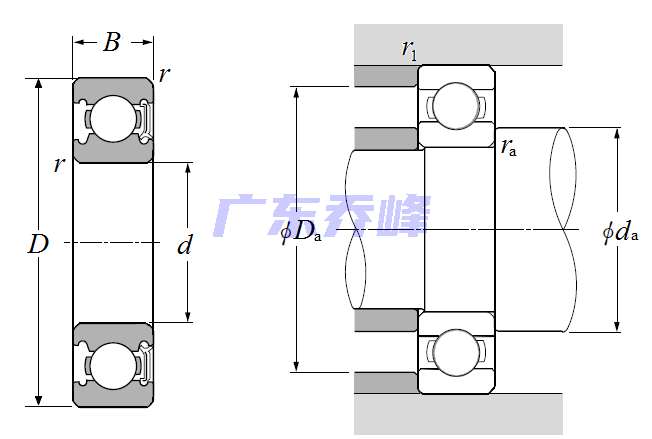 單列深溝球軸承 - 單面密封(輕接觸橡膠密封) - 尺寸