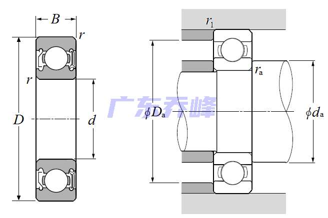 單列深溝球軸承 - 單面防塵蓋&單面密封(接觸式橡膠密封) - 尺寸