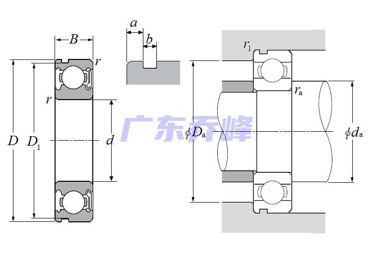 單列深溝球軸承 - 單面密封(非接觸式橡膠密封)帶止動環槽 - 尺寸