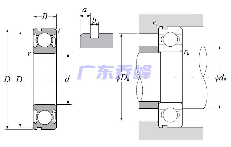 | 單列深溝球軸承 - 單面防塵蓋帶止動環槽 - 尺寸 | |
