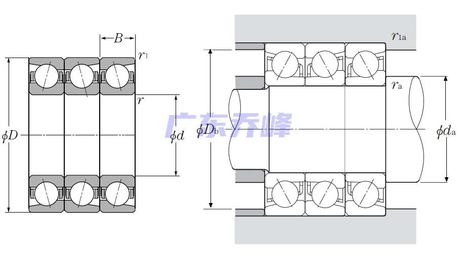 | 多列角接觸球軸承 - 背對背配對 - 尺寸 | |