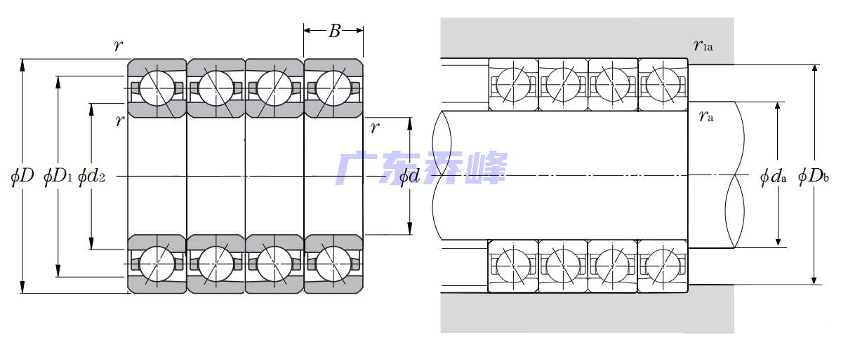 | 多列角接觸球軸承 - 串聯(lián)配對 - 尺寸 | |