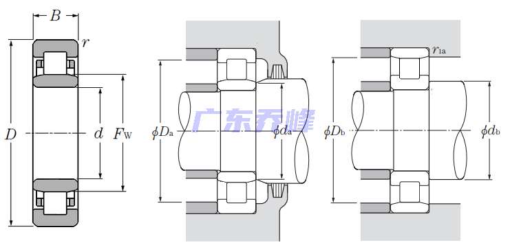NU:外圈雙擋邊,內(nèi)邊無(wú)擋邊,內(nèi)圈可分離
