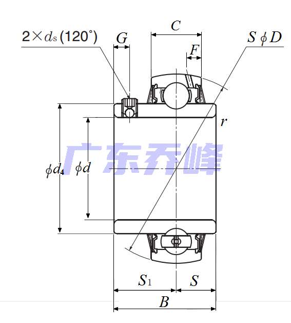 | UCFU-3/4 | 詳細尺寸,d:19.050mm,c:15.100mm,b:29.400mm,j:63.500mm,r:85.700mm |