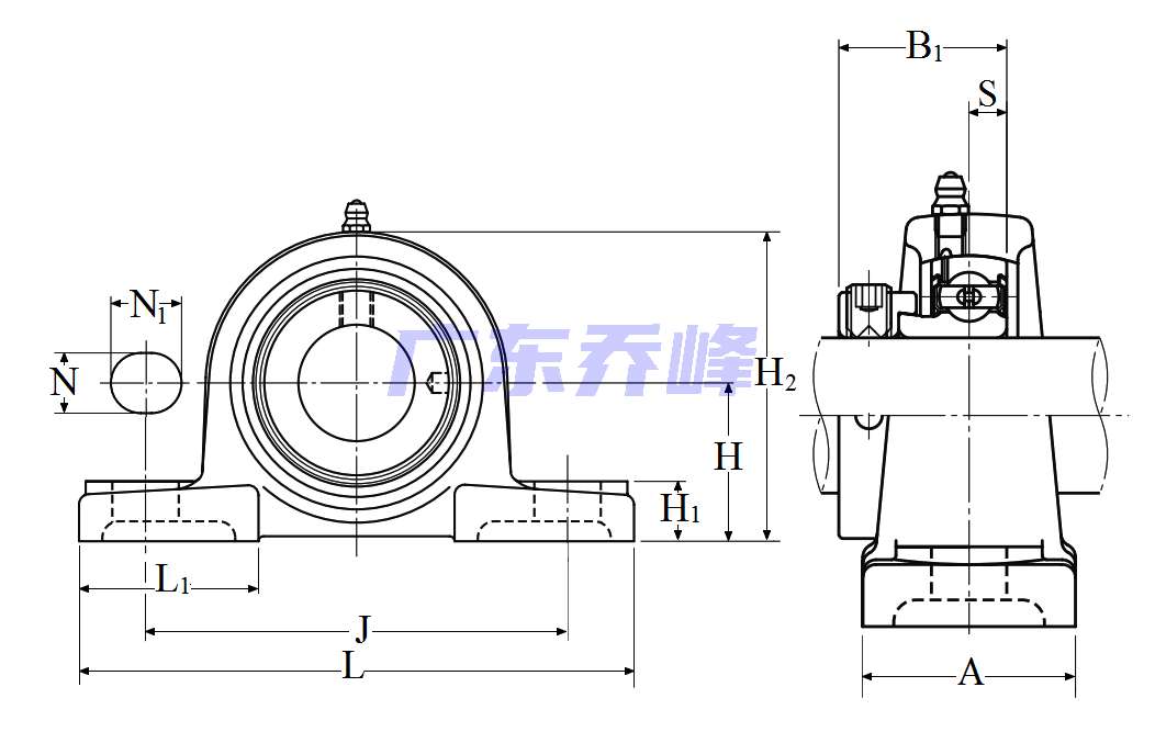 | 軸承座,鑄造外殼,帶偏心鎖緊套,AELP/AELPL型 - 尺寸 | |