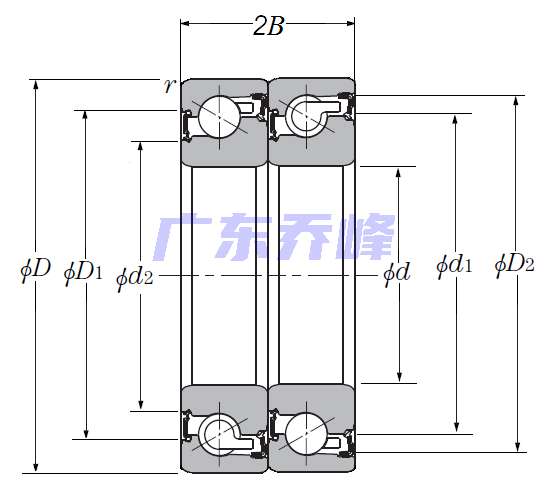 滾珠絲杠用雙角接觸推力球軸承 - 串聯配對,雙面密封,一排承受軸向載荷 - 尺寸