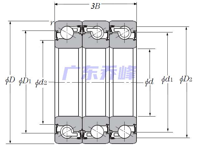 滾珠絲杠用三列推力角接觸球軸承 - DFT配對,雙面密封,兩排承受軸向載荷 - 尺寸