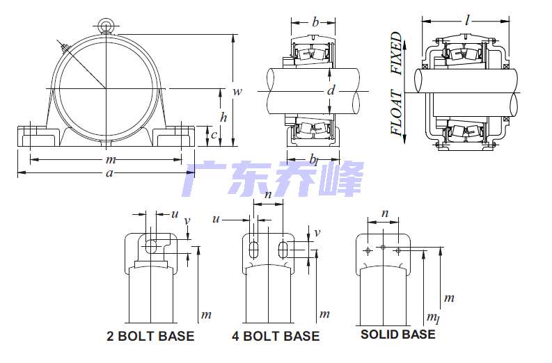 | 密封球面法蘭式軸承座單元,鑄造防塵蓋,開式端蓋,SPAW/SPW型 - 尺寸 | |