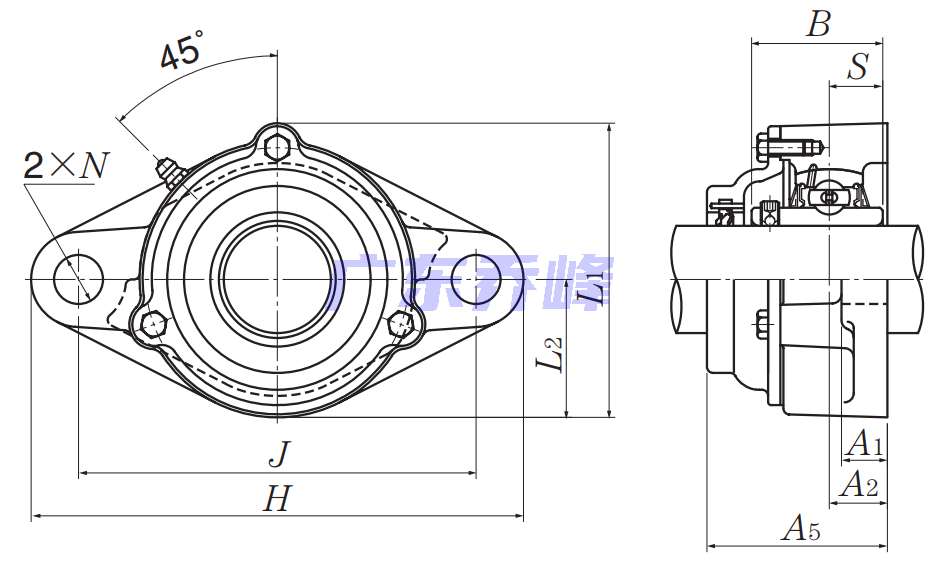 | 類型 | 雙螺栓菱形法蘭式軸承座單元 |