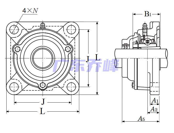 | 類型 | 四螺栓方形法蘭式軸承座 |
