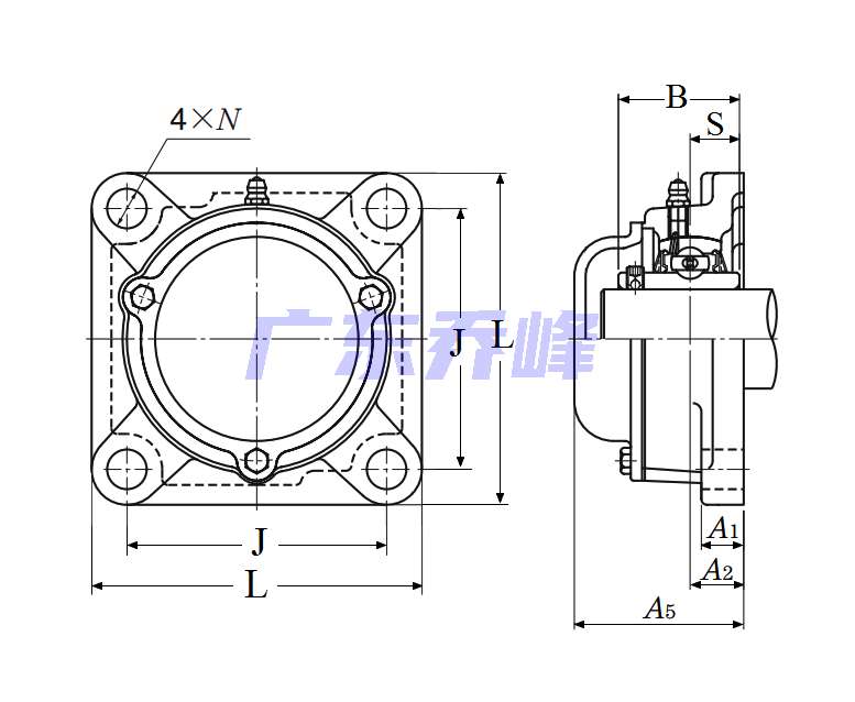 | 類型 | 四螺栓方形法蘭式軸承座 |