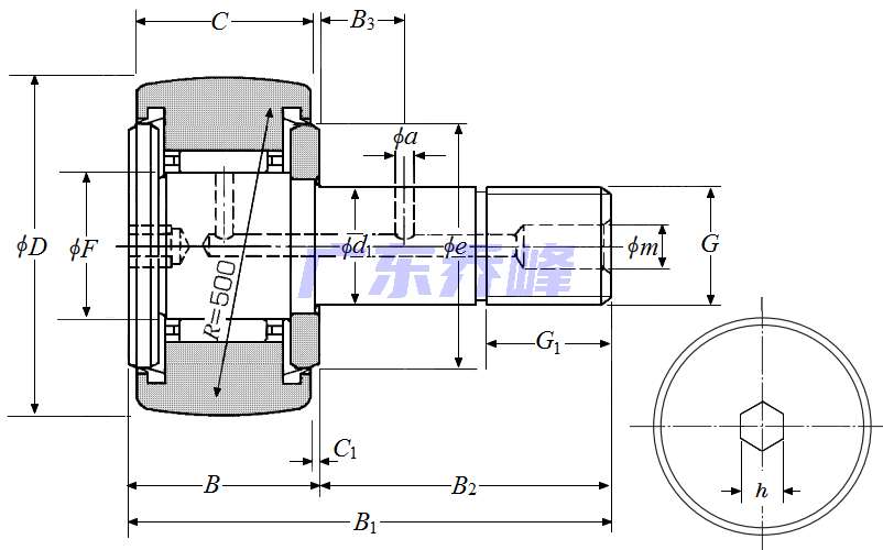 | 凸輪從動螺柱式滾輪軸承 - 球面外圈,CR..LLH型 - 尺寸 | |