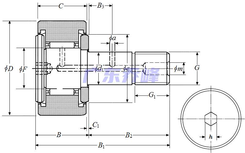 | 凸輪從動螺柱式滾輪軸承 - 圓柱內徑,CR..LLH型 - 尺寸 | |
