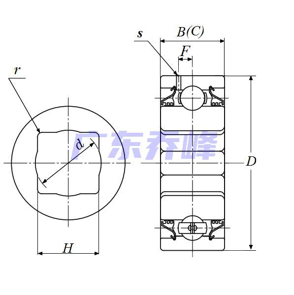 | 重型盤式軸承 - 方孔,圓柱內徑,7系列 - 尺寸 | |