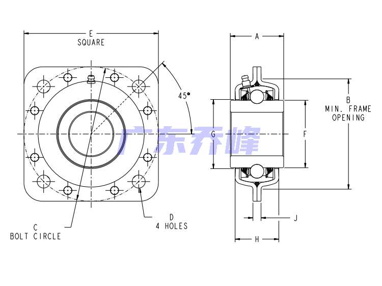 類型 四螺栓方形法蘭式軸承座