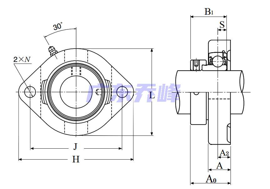 軸承型號:JELFD207-104,雙螺栓菱形法蘭式軸承座單元,鑄造外殼,帶偏心鎖緊套,JELFD型