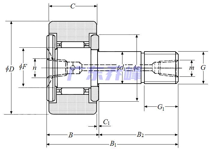 | 凸輪從動螺柱式滾輪軸承 - 圓柱內徑,KRT型 - 尺寸 | |