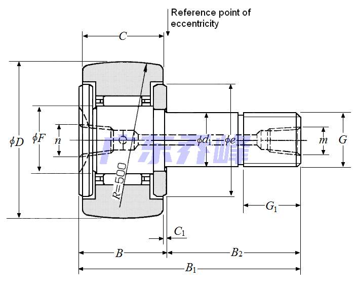 | 凸輪從動(dòng)螺柱式滾輪軸承 - 球面外圈,KRU型 - 尺寸 | |