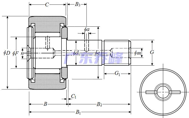 | 凸輪從動螺柱式滾輪軸承 - 圓柱內徑,KRV..LL型 - 尺寸 | |