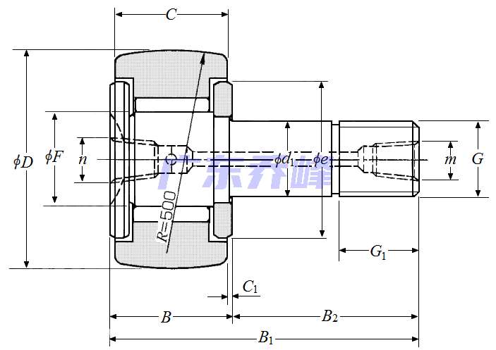 | 凸輪從動螺柱式滾輪軸承 - 球面外圈,KR - 尺寸 | |