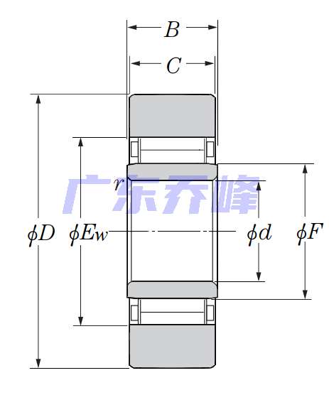 | 擋圈型滾輪軸承 - 帶內(nèi)圈,NAB型,圓柱內(nèi)徑 - 尺寸 | |