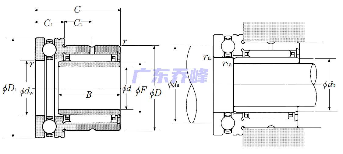 | 帶推力球軸承的滾針組合軸承 - 開式帶內(nèi)圈 - 尺寸 | |