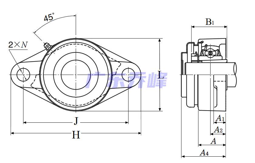 | 類型 | 雙螺栓菱形法蘭式軸承座單元 |