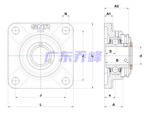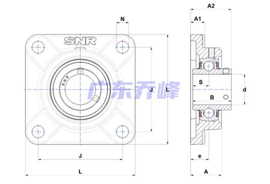 軸承型號:SUCF204,四螺栓方形法蘭式不銹鋼軸承座,帶緊定螺釘,SUCF型