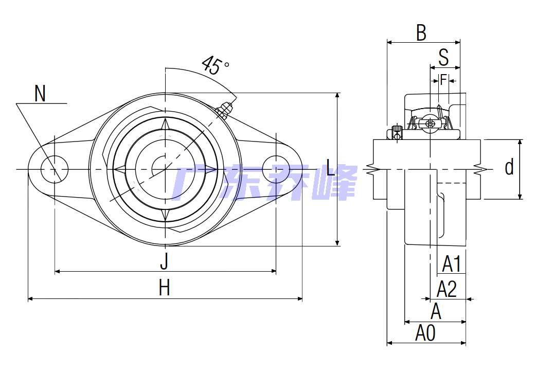軸承型號:UCFLU-1.1/2,超一流雙螺栓法蘭式軸承座,帶緊定螺釘,UCFLU型