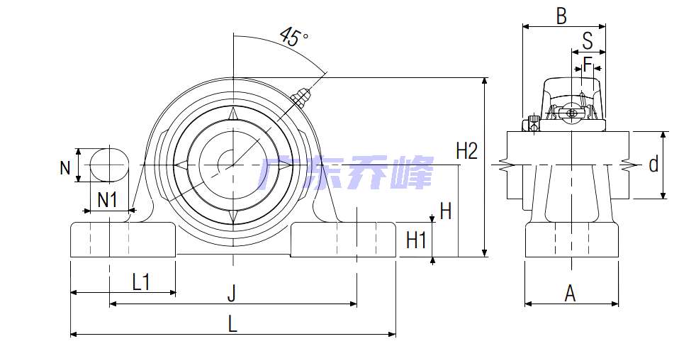 | UCPL-3/4 | 詳細尺寸,d:19.050mm,h:31.80000mm,b:38.100mm,j:96.000mm,2b:64.300mm,r:127.000mm |