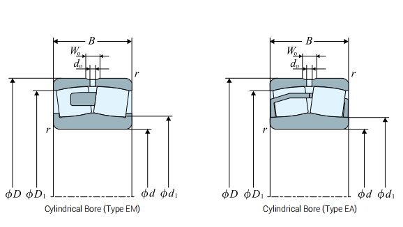 D1:軸承外圈帶潤(rùn)滑槽和三個(gè)潤(rùn)滑孔